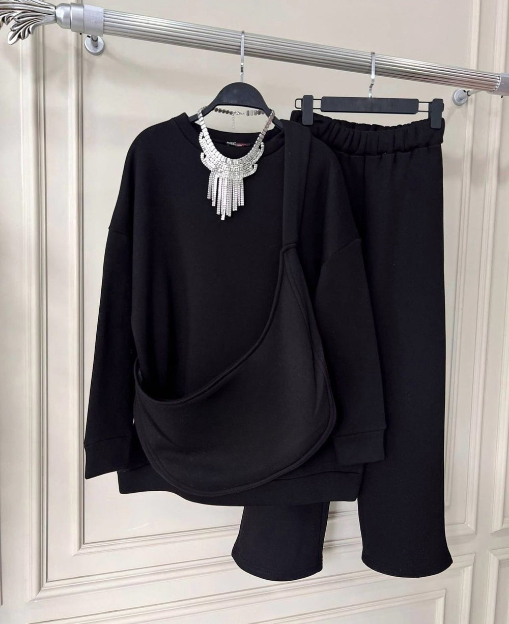 CH # 391 Miswah Carryall Winter Fleece Co Ords Set SweatShirt + Trouser + Bag