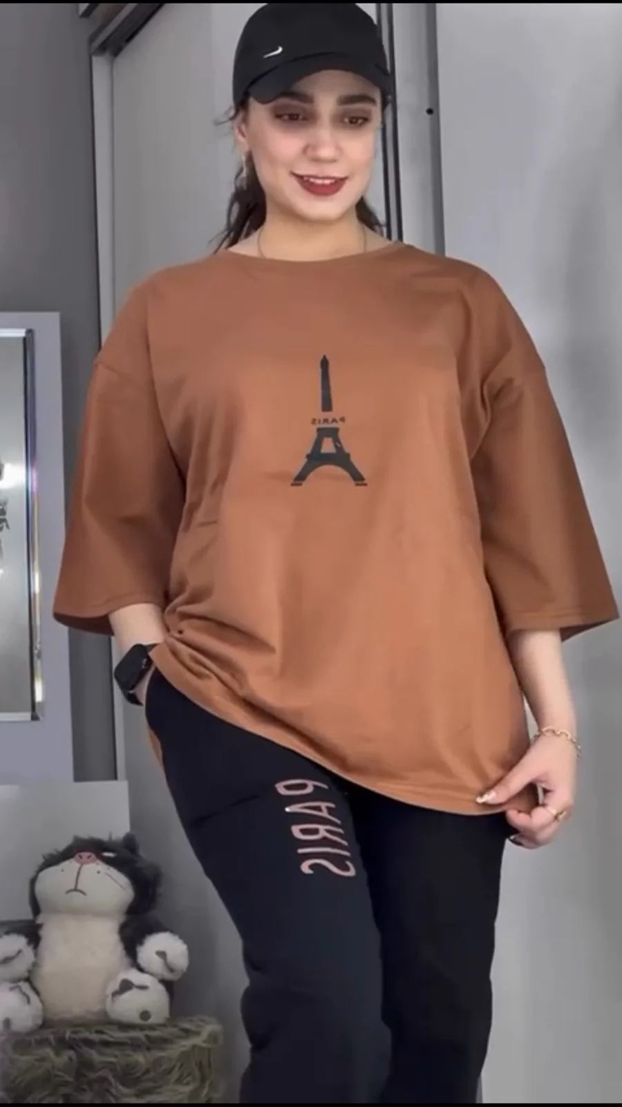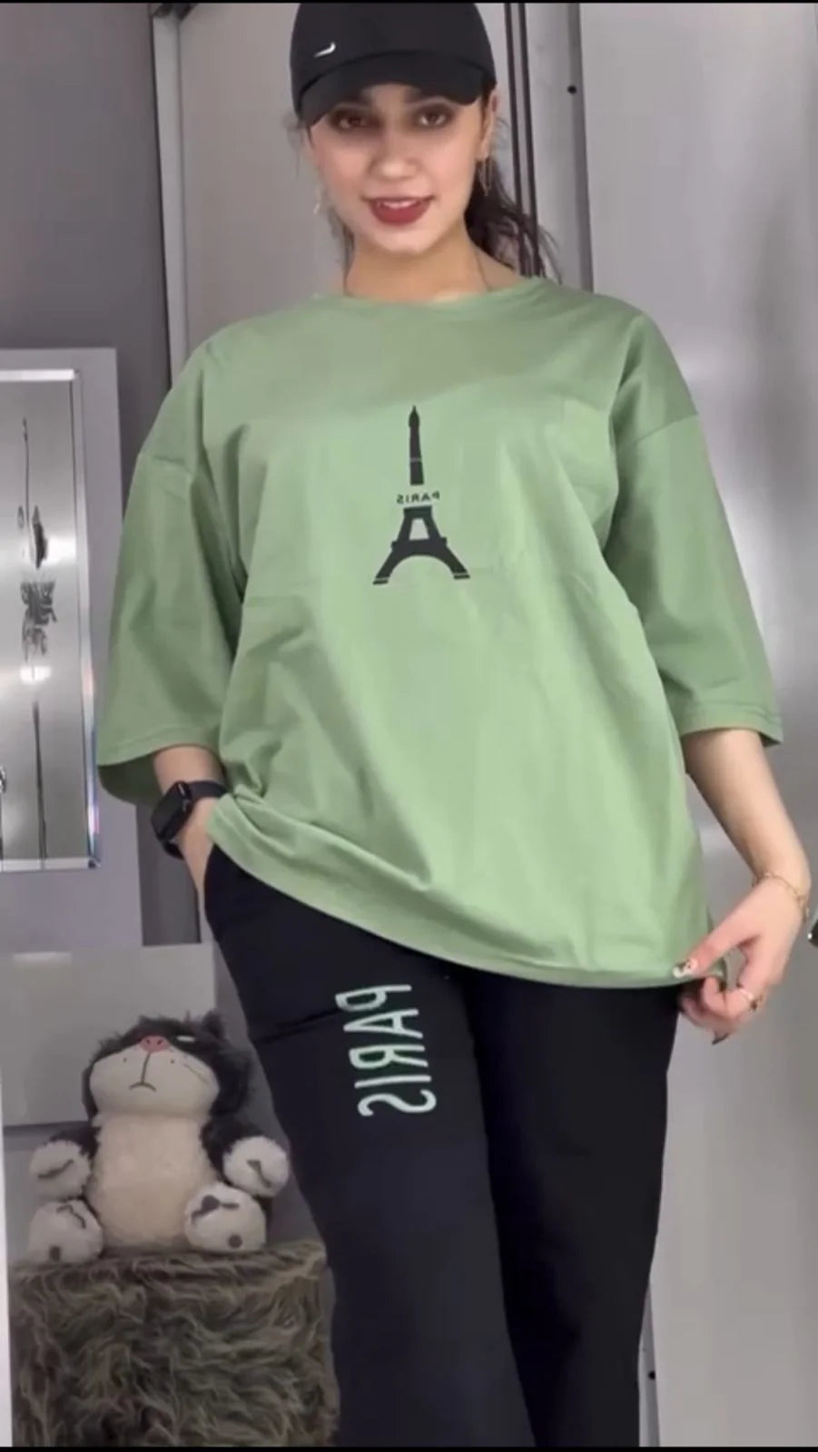 Casual Cool: Make a statement with our Printed Drop-Shoulder Tee Trousers set, perfect for adding a trendy twist to your everyday wardrobe.