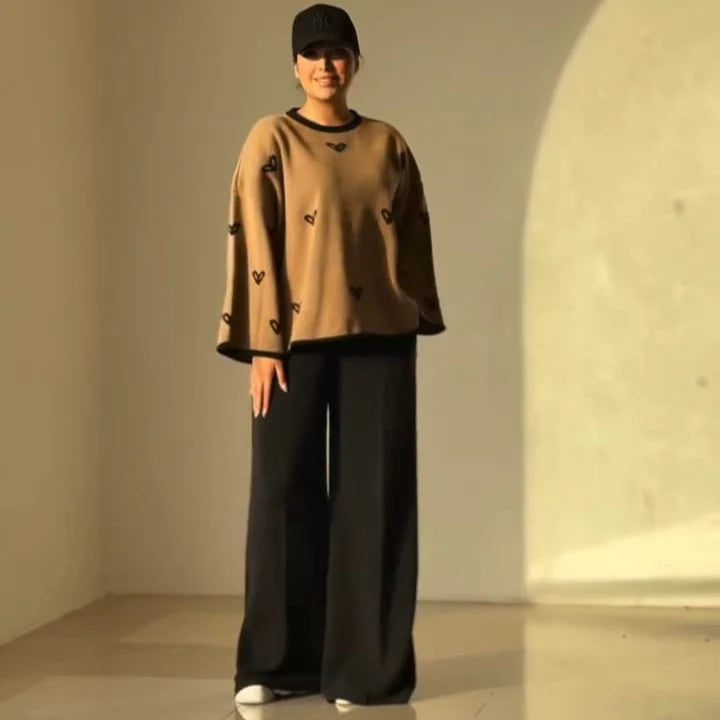 Stay warm and stylish this winter with the Miswah Warm & Cozy 2 Piece Outfit. Crafted from soft fleece, this co-ord set offers exceptional comfort and insulation against cold weather. Featuring charming heart prints, it adds a playful yet elegant touch to your casual winter wardrobe. Designed for a relaxed fit, it allows easy movement while maintaining a neat silhouette. Ideal for layering or wearing on its own, this set combines functionality with fashion, making it a practical choice for chilly days without compromising on style.