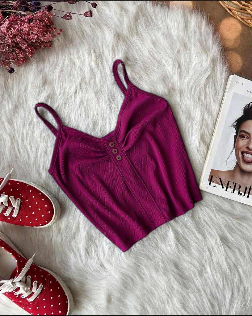 Miswah Cotton Ribbed Stretchable Button Style Crop Top Ch 385